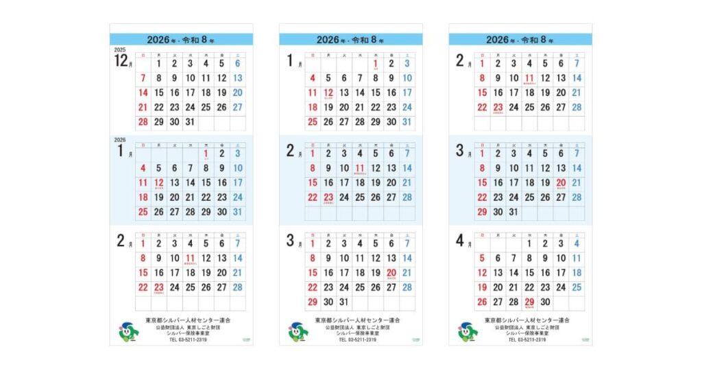 公益財団法人 東京しごと財団「シルバー人材センター連合カレンダーの作成」(デザイン、DTP、印刷、発送、等) デザイン等の制作業務、及び印刷、発送等を行わせていただきました。 -